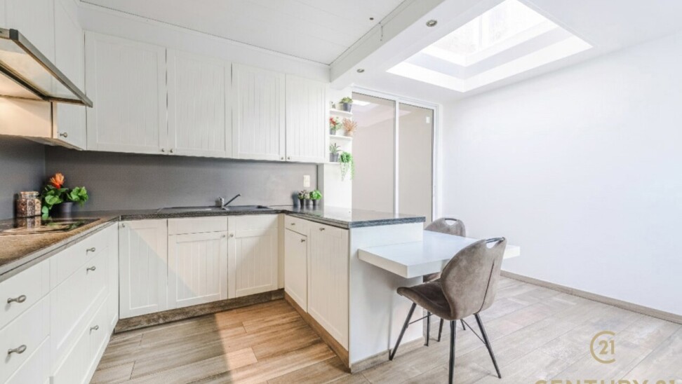 Upon entering, you are welcomed by the spacious, light-filled living areas. The atmosphere immediately invites you to gather with family and friends. The cosy kitchen, fully equipped with modern appliances and a charming breakfast nook, forms the heart of the home. It is the place where the day begins with a smile and ends with unforgettable meals and conversations.
