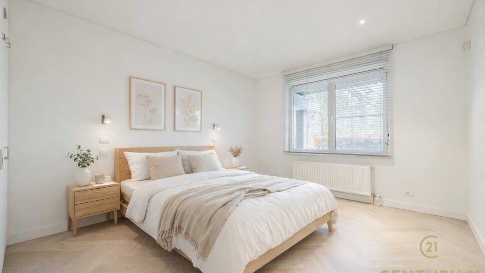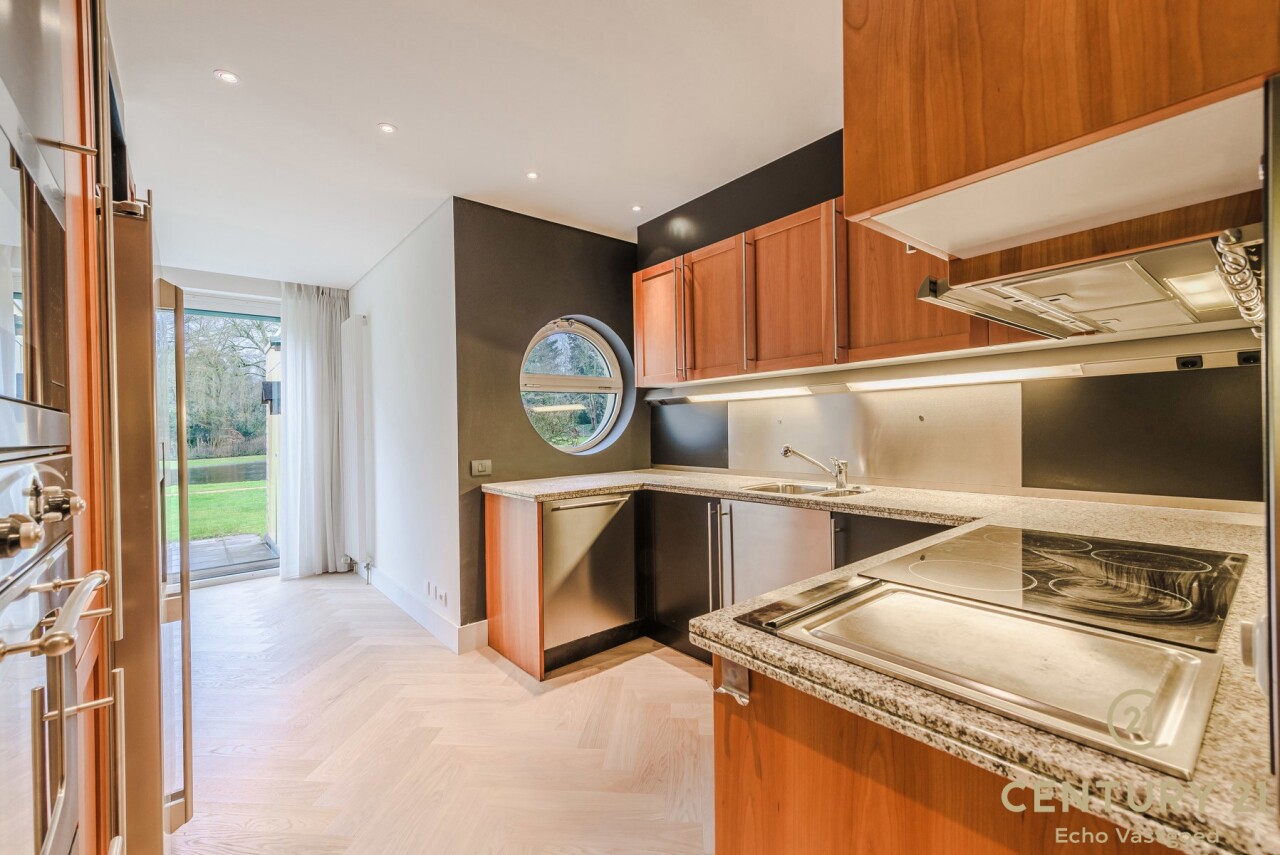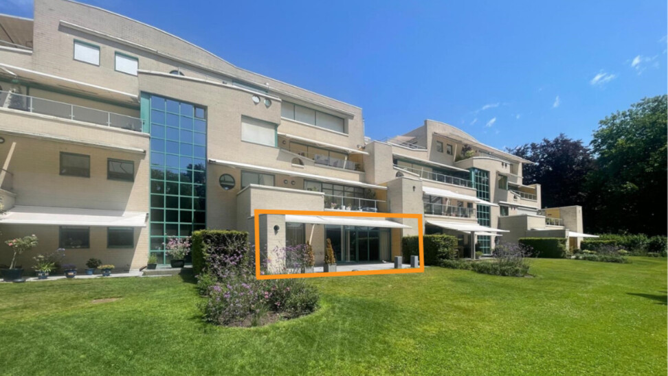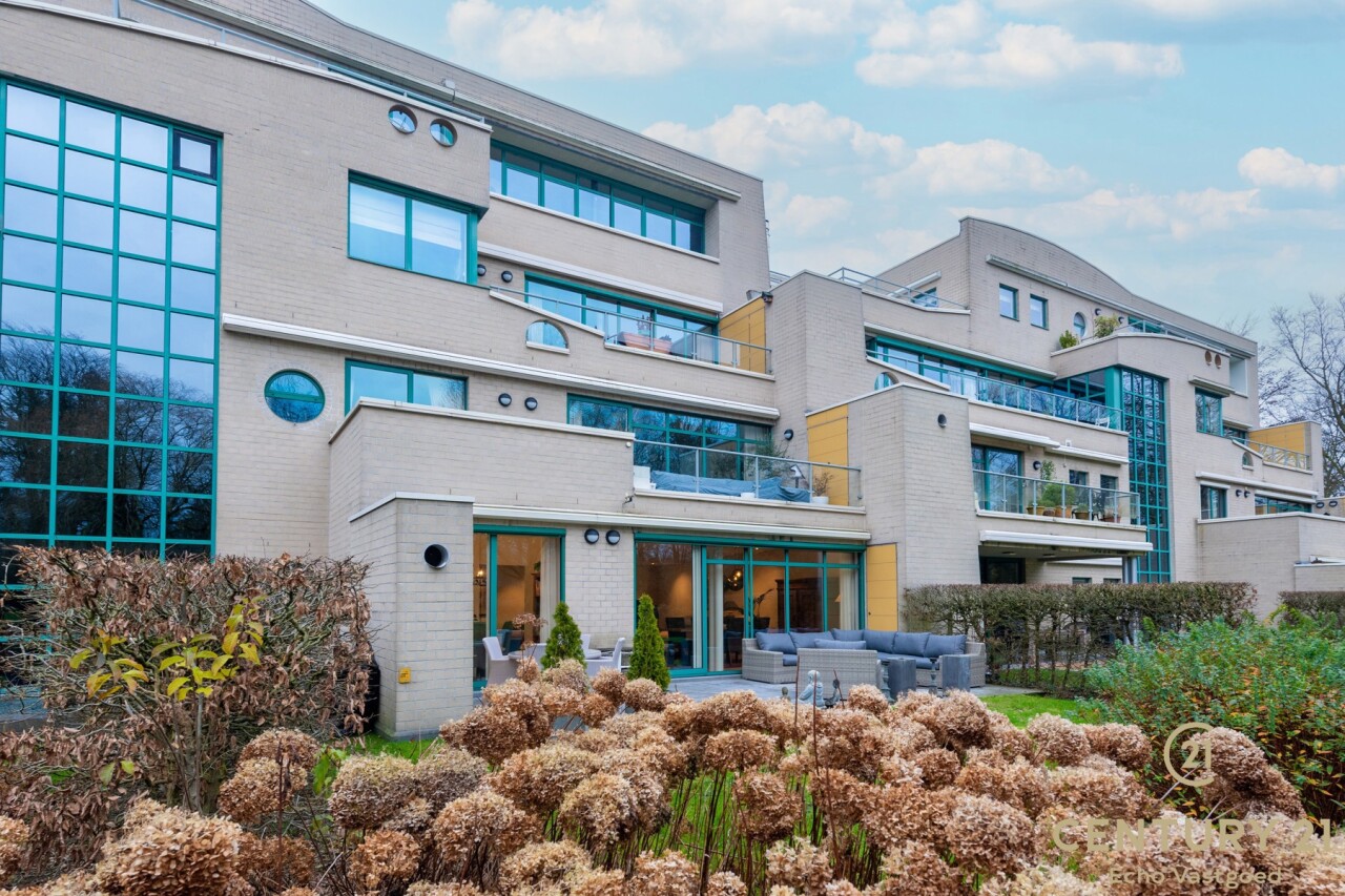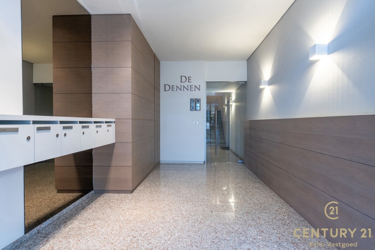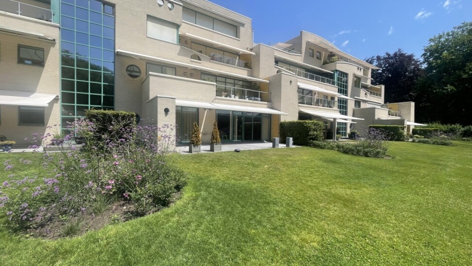 Exclusive ground floor flat in the prestigious park domain Residence ‘De Dennen’, where tranquillity, luxury and nature come together harmoniously. Through the stately entrance on Steenweg op Mol, you drive past beautifully landscaped walking paths and atmospheric ponds until you reach the stylish building. The flat is located on the quiet park side and offers a panoramic view of the greenery from the light-filled living room and the spacious, south-west facing terrace.