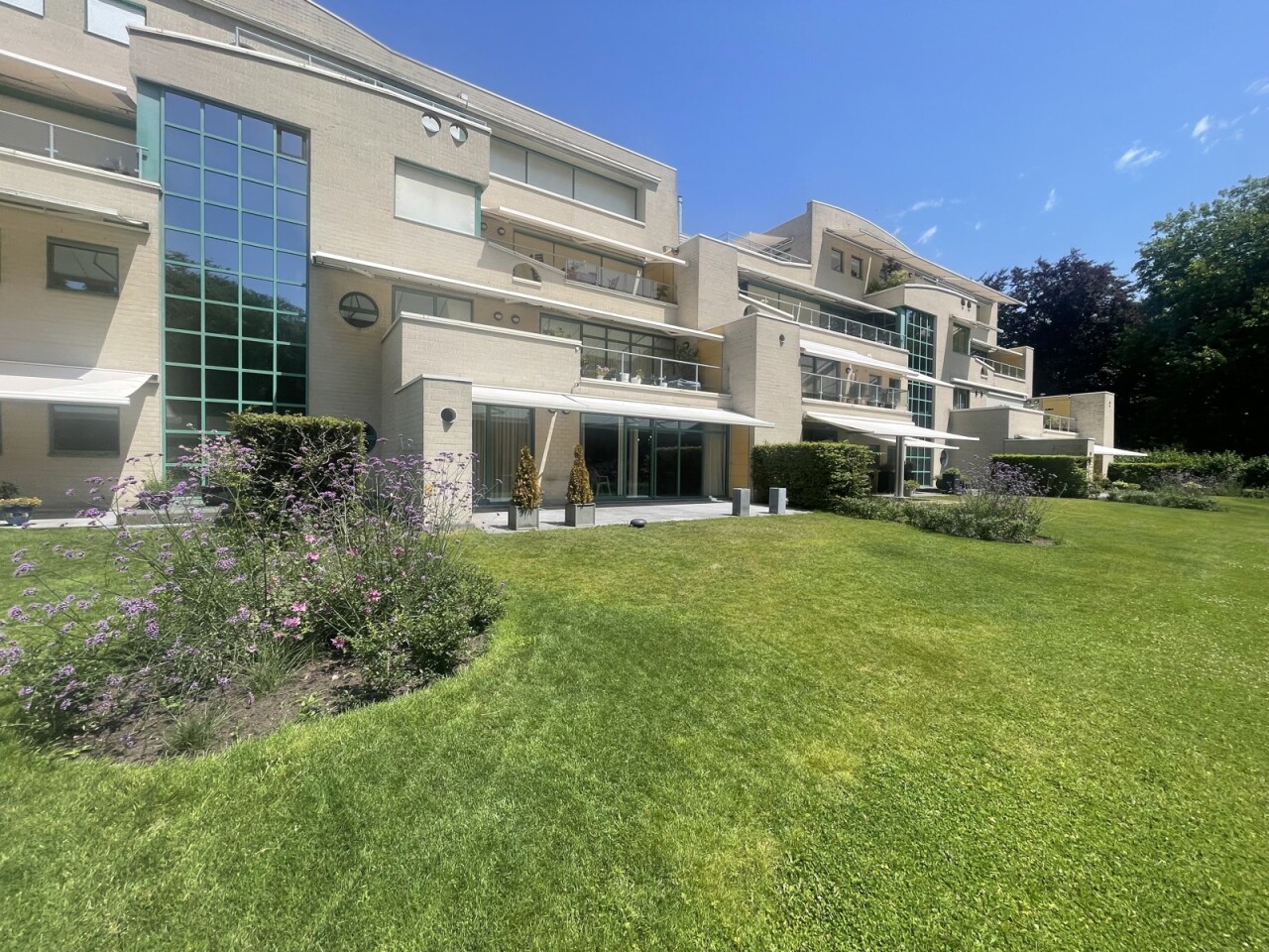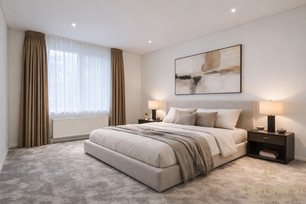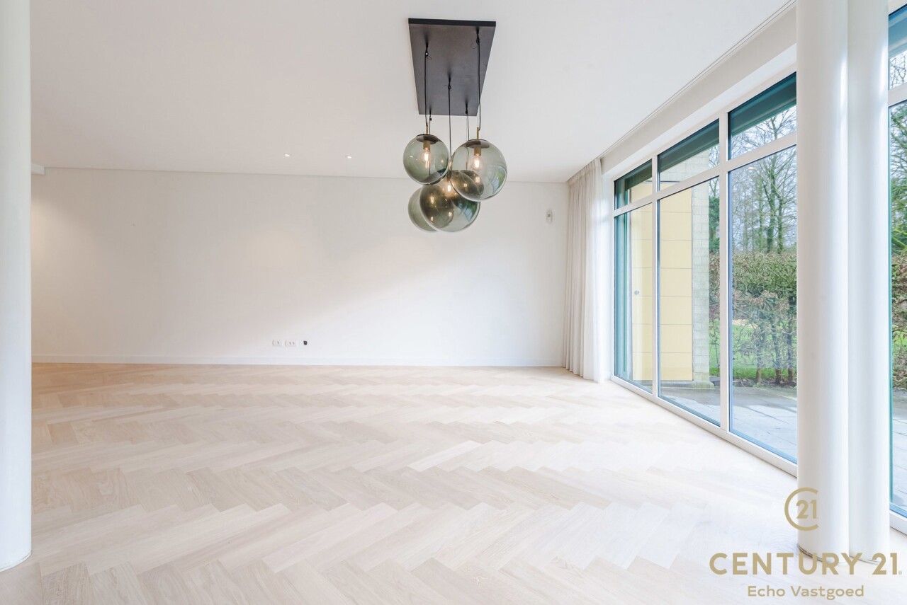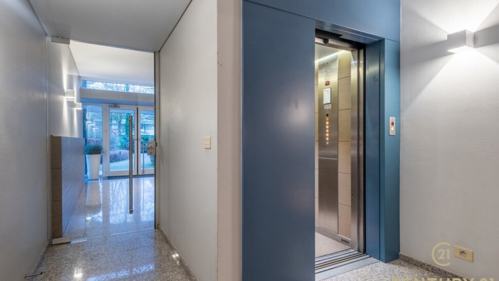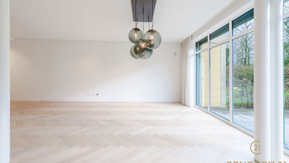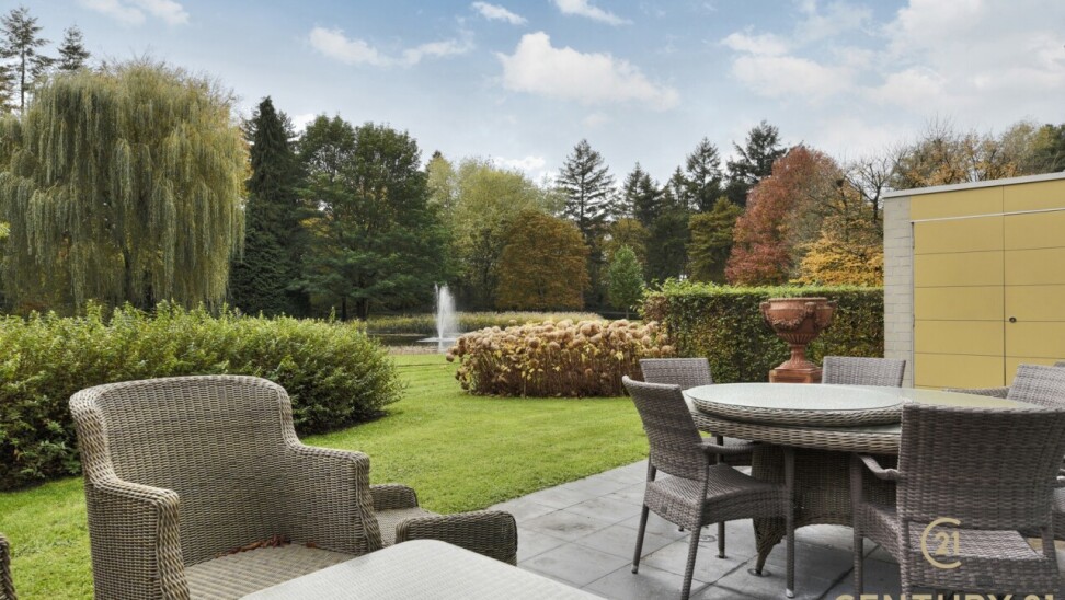 Exclusive ground floor flat in the prestigious park domain Residence ‘De Dennen’, where tranquillity, luxury and nature come together harmoniously. Through the stately entrance on Steenweg op Mol, you drive past beautifully landscaped walking paths and atmospheric ponds until you reach the stylish building. The flat is located on the quiet park side and offers a panoramic view of the greenery from the light-filled living room and the spacious, south-west facing terrace.