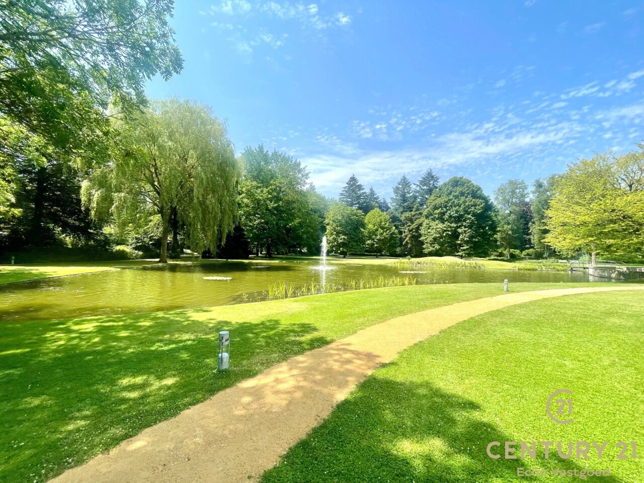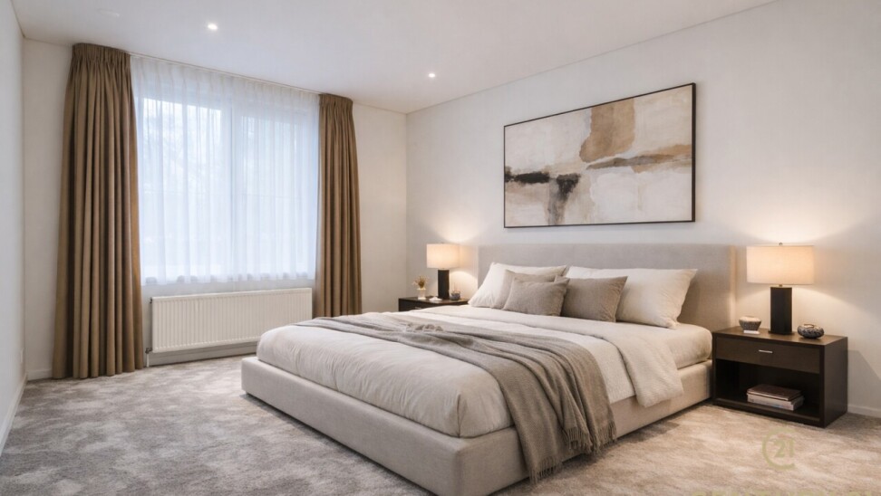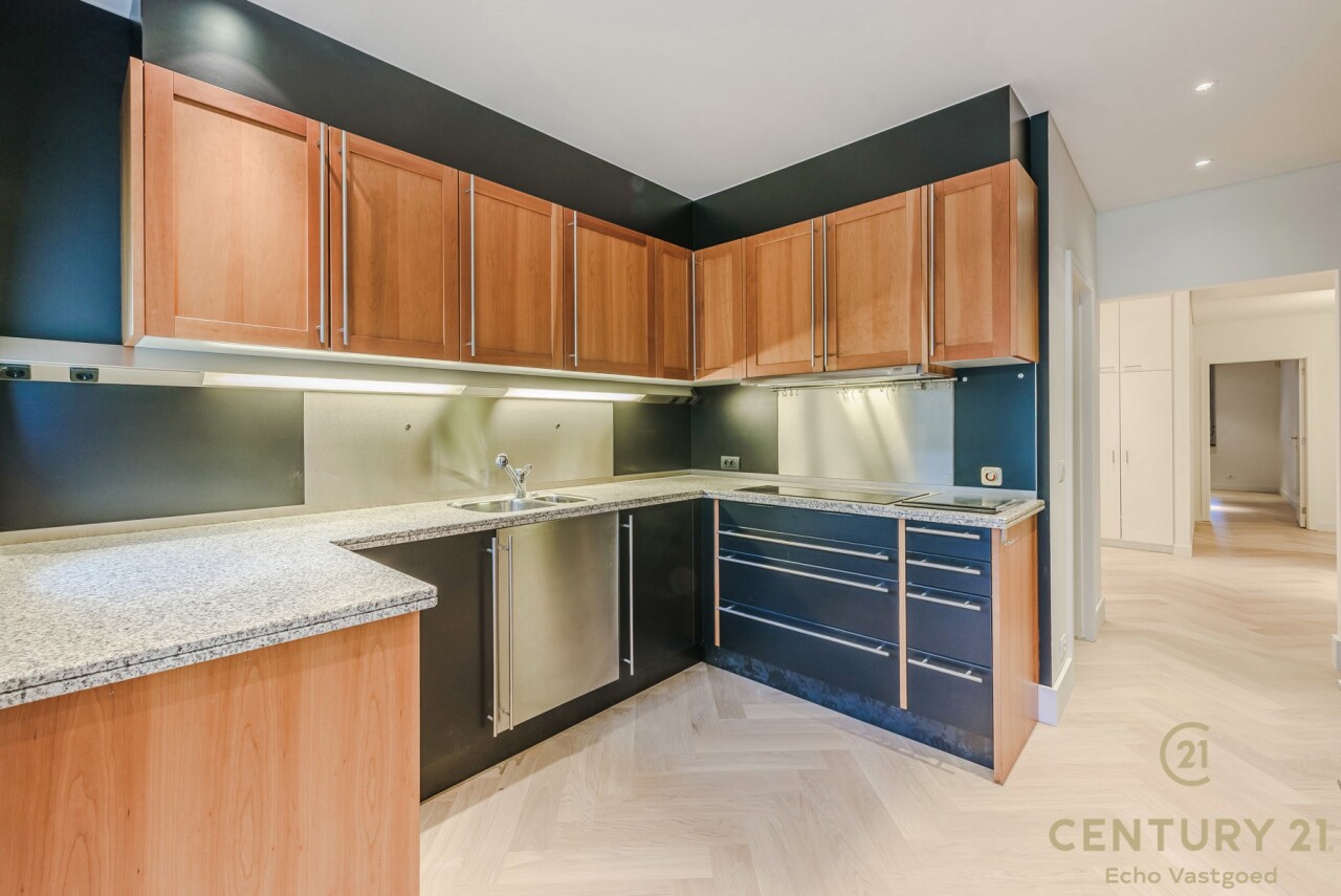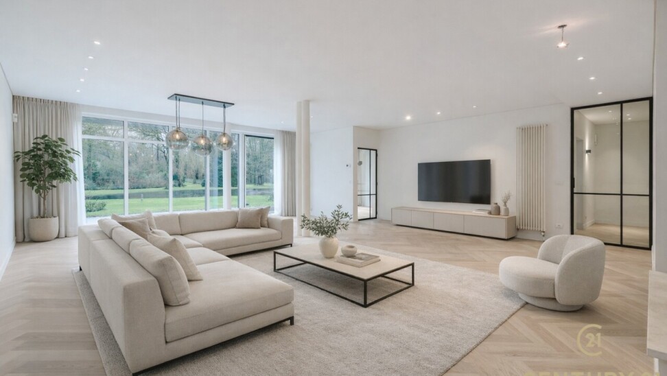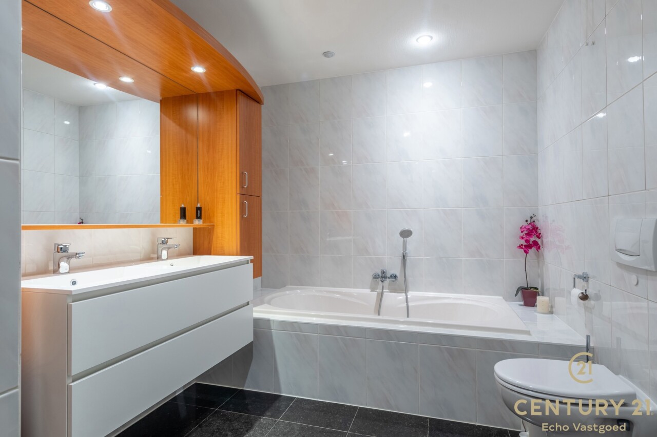 Exclusive ground floor flat in the prestigious park domain Residence ‘De Dennen’, where tranquillity, luxury and nature come together harmoniously. Through the stately entrance on Steenweg op Mol, you drive past beautifully landscaped walking paths and atmospheric ponds until you reach the stylish building. The flat is located on the quiet park side and offers a panoramic view of the greenery from the light-filled living room and the spacious, south-west facing terrace.