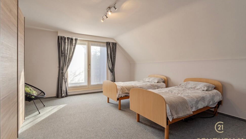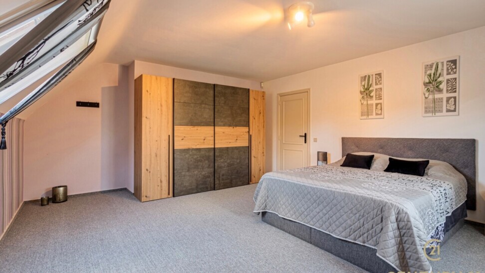 The beautiful oak staircase leads to the landing of the bedroom floor where there are 4 particularly spacious bedrooms, night toilet, dressing room and bathroom. The insulated attic is accessible by a sliding staircase.