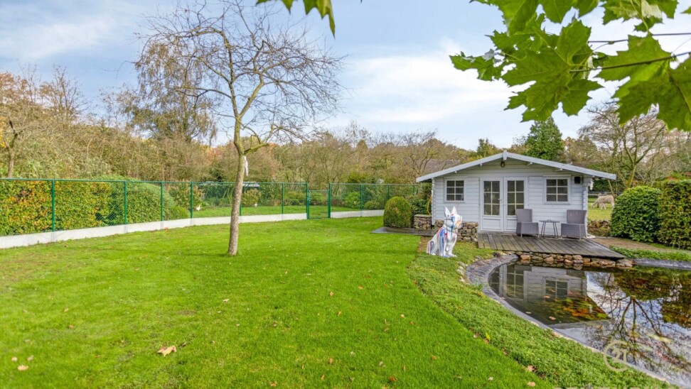 Beautifully landscaped garden enjoying complete privacy with large (newly constructed) sun terrace approx. 85 m²! convenient sprinkler system, 2 garden sheds, beautiful ponds.