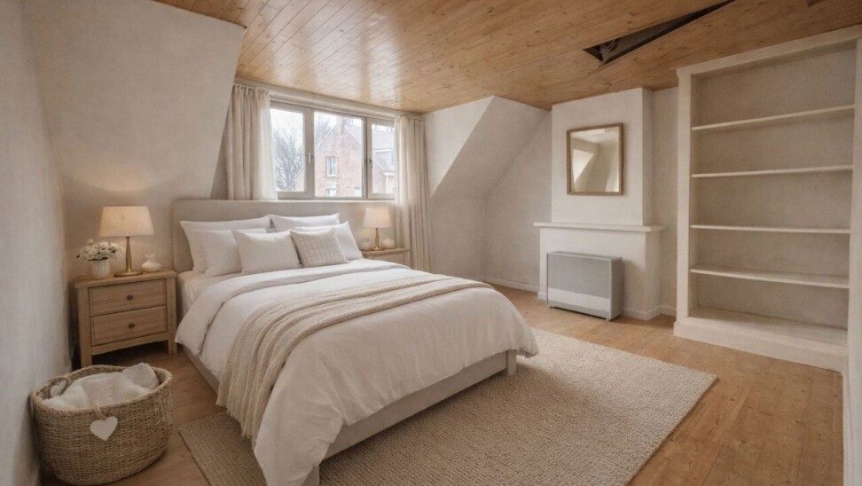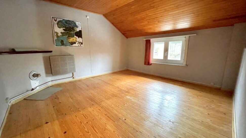 Op de verdieping bevinden zich twee ruime slaapkamers. De zeer grote zolderruimte biedt bovendien tal van mogelijkheden voor wie extra slaapkamers of een hobbyruimte wenst te creëren. Met een vaste trap en verdere afwerking transformeert u deze ruimte tot een volwaardig deel van de woning.