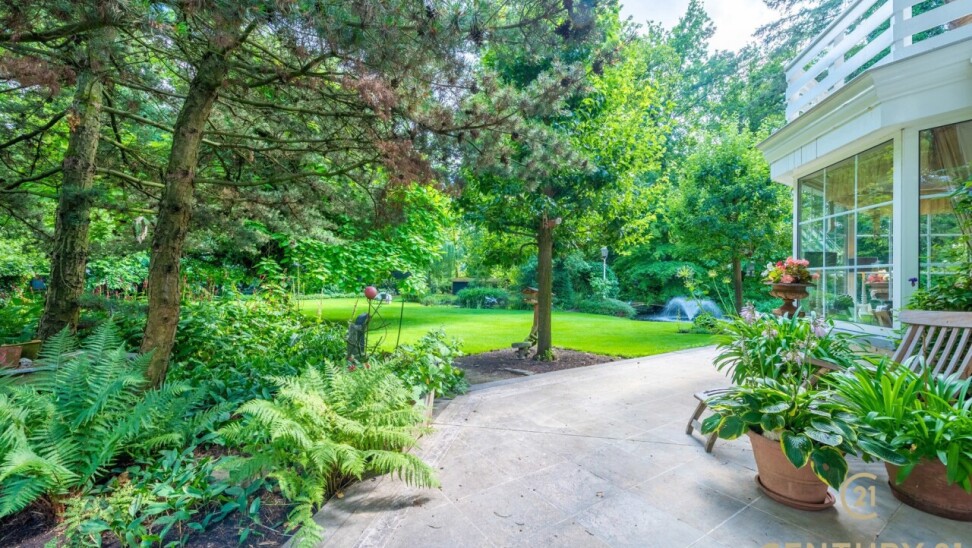 De tuin is werkelijk een parel: aangelegd als een rustgevend park met vijvers, wandelpaadjes en idyllische zithoekjes vormt het geheel een oase van groen en stilte. Dit extra perceel biedt tevens potentieel voor wie toekomstgericht denkt aan bouwen of uitbreiden.
