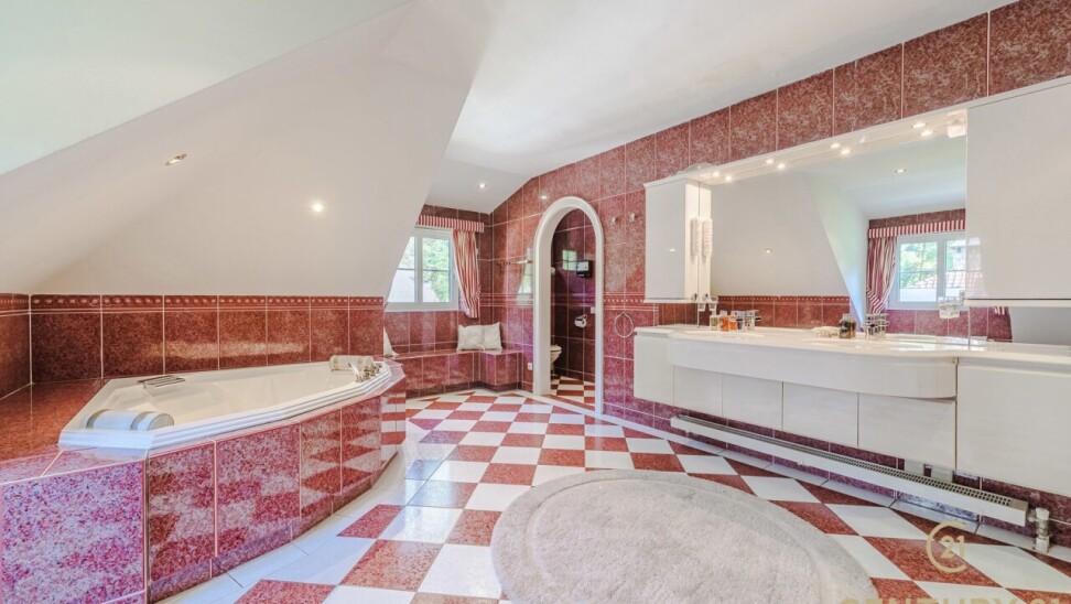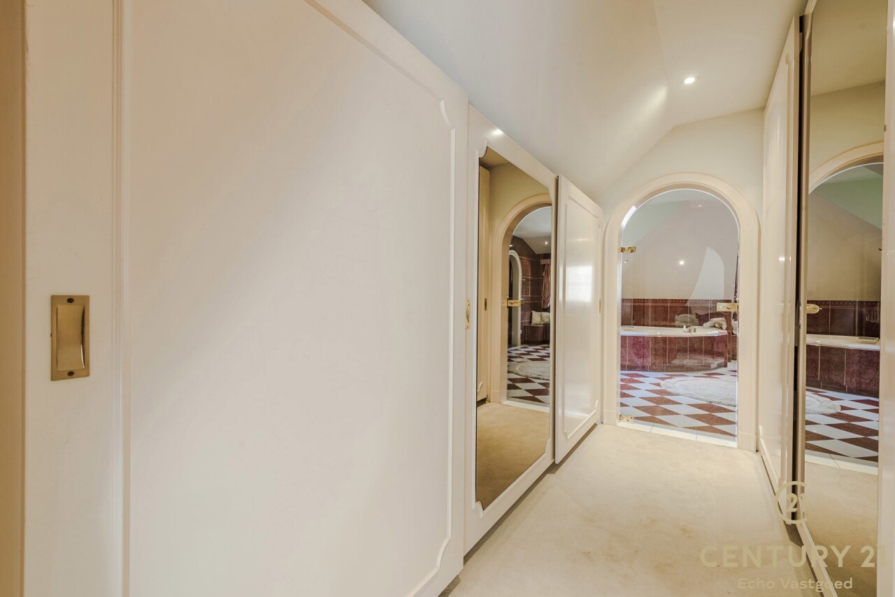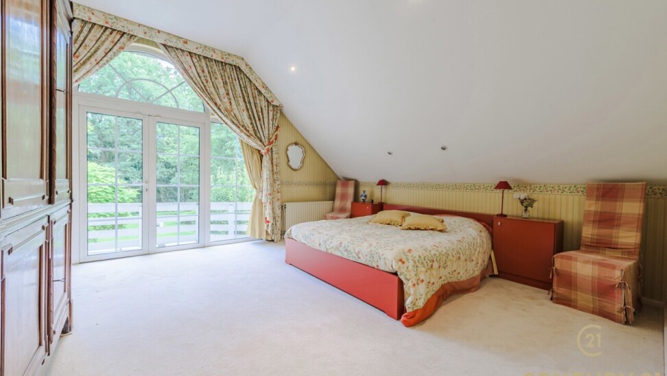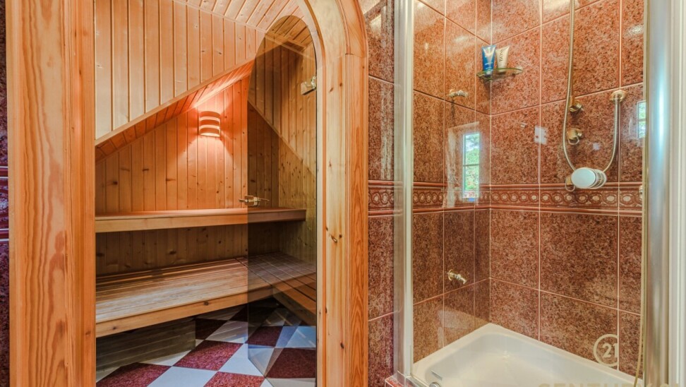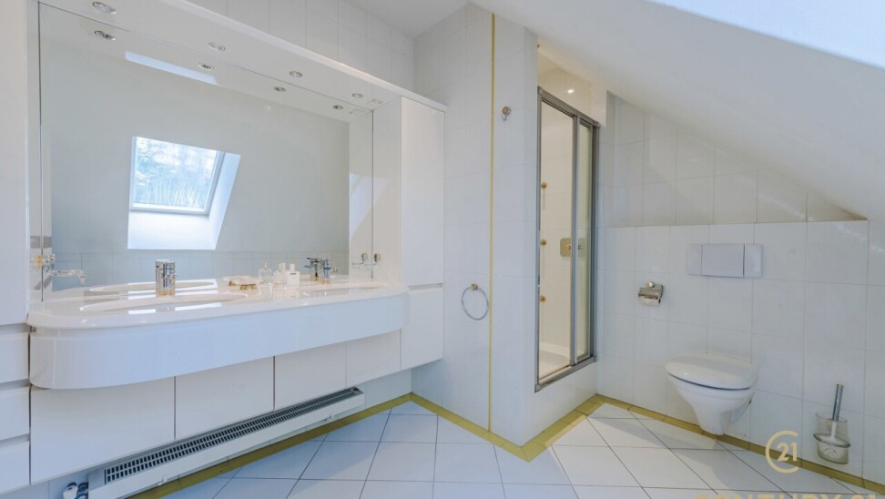 Op de eerste verdieping bevinden zich vier volwaardige slaapkamers en drie badkamers. De masterbedroom beschikt over een eigen inloopdressing, een royale badkamer én een privé-sauna – een ware wellnessbeleving aan huis.